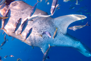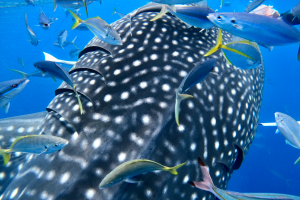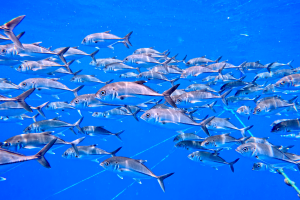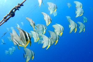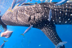 海の中にはジンベイザメ以外にも、グルクンやムロアジ、ツバメウオ、コバンザメ、ギンガメアジなど沢山のお魚たちが見られます。