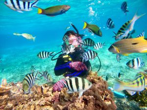 足が着く場所からダイビングを始めるので、体験ダイビングが初めての方、ダイビングをやってみたいけどちょっと怖いなと思っている方にはおすすめのコースです。